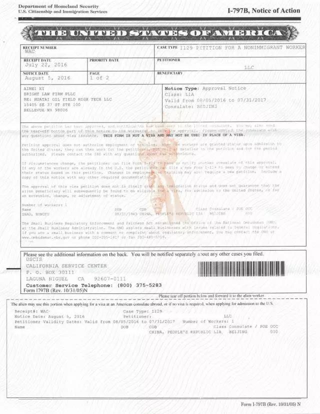 办理移民也可以超快速度。陕西亚美拓普海外投资咨询有限公司办理L-1签证14天审批完成。